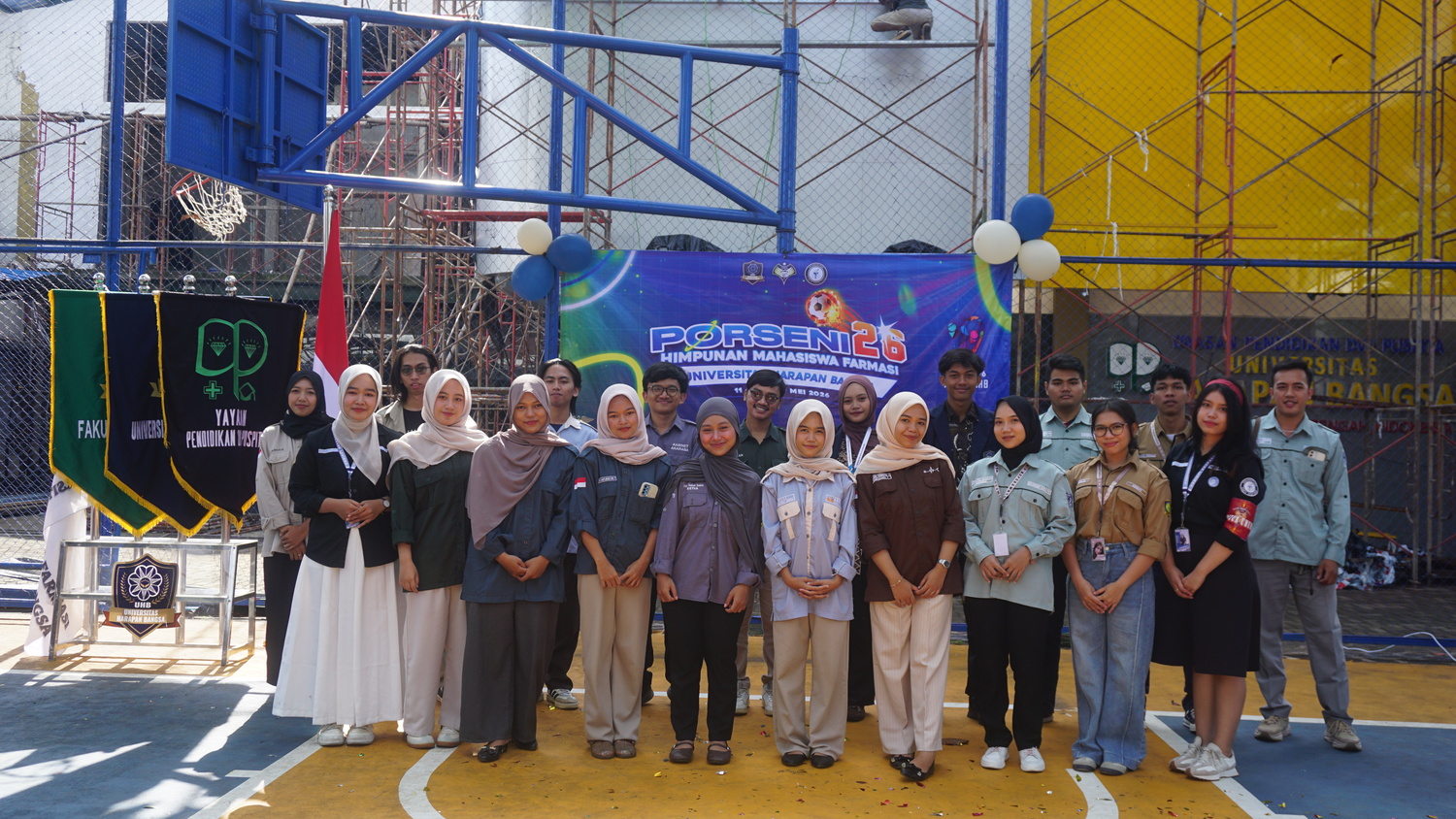 Pembukaan Pekan Olahraga dan Seni (PORSENI) Program Studi S1 Farmasi Universitas Harapan Bangsa digelar pada Sabtu, 11 April 2026 di Lapangan Basket Kampus 1 UHB. Kegiatan ini diikuti oleh mahasiswa S1 Farmasi serta dihadiri perwakilan Himpunan Mahasiswa dari berbagai program studi. PORSENI mengusung tema Arsa Wira Nusantara sebagai upaya meningkatkan kebersamaan, sportivitas, dan kreativitas mahasiswa melalui berbagai perlombaan olahraga dan seni yang berlangsung hingga Mei 2026.