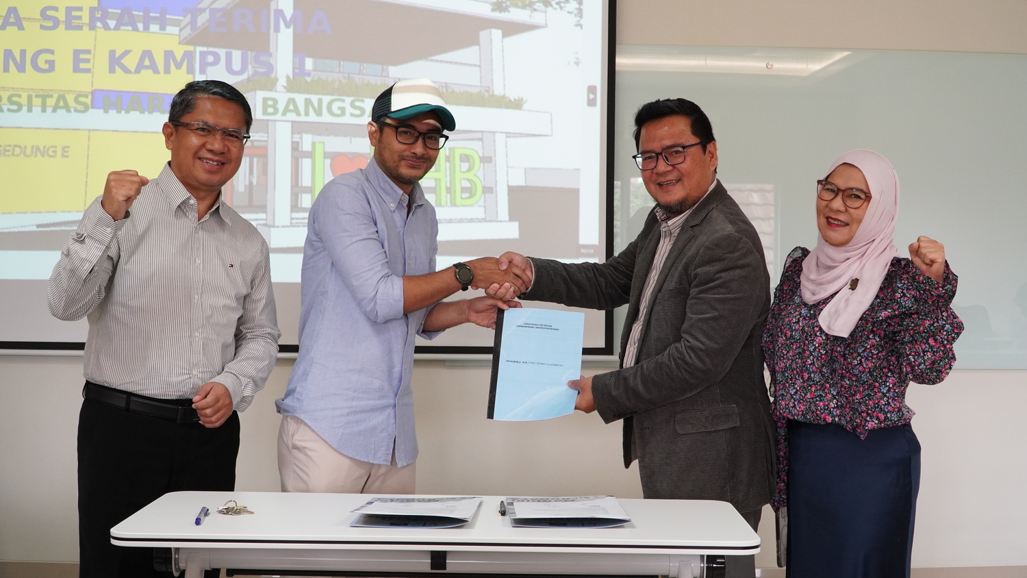 Universitas Harapan Bangsa melaksanakan serah terima awal penyelesaian pembangunan Gedung E Kampus 1 pada Jumat, 27 Februari 2026, di Gedung E Kampus 1 UHB. Acara ini dihadiri jajaran Yayasan Pendidikan Dwi Puspita selaku badan penyelenggara, pimpinan universitas, Kepala BAAK UHB, pelaksana pembangunan, serta tamu undangan. Serah terima dilakukan setelah proses pembangunan berlangsung sekitar 22 bulan dan menjadi tahap awal sebelum memasuki masa pemeliharaan atau Defects Liability Period.
