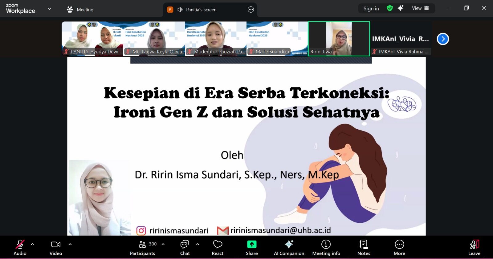 Webinar Nasional “Membangun Ketangguhan Mental Generasi Z” digelar Universitas Harapan Bangsa pada Minggu, 16 November 2025 melalui Zoom Meeting dengan menghadirkan Dr. Ririn Isma Sundari, S.Kep., Ns., M.Kep. Acara ini bertujuan memberikan pemahaman mengenai ketangguhan mental remaja melalui materi Kesepian di Era Serba Terkoneksi: Ironi Gen Z dan Solusi Sehatnya, sekaligus mendorong literasi kesehatan mental yang relevan dengan tantangan sosial masa kini.
