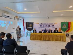 Universitas Harapan Bangsa menggelar Yudisium pada 27 Februari 2026 di Aula Gedung E Kampus 1 UHB. Kegiatan ini dihadiri jajaran pimpinan universitas, dekanat fakultas, kepala program studi, dosen, serta para lulusan. Prosesi akademik tersebut menjadi penanda resmi kelulusan mahasiswa yang telah menuntaskan seluruh kewajiban studi. Dekan Fakultas Kesehatan Ns. Dwi Novitasari, S.Kep., M.Sc memberikan sambutan mewakili Rektor UHB dan menegaskan pentingnya integritas serta kontribusi lulusan bagi masyarakat.